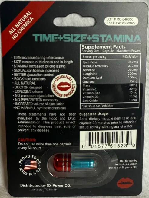 Take one capsule 30 minutes before sex to help energy, libido, and performance.