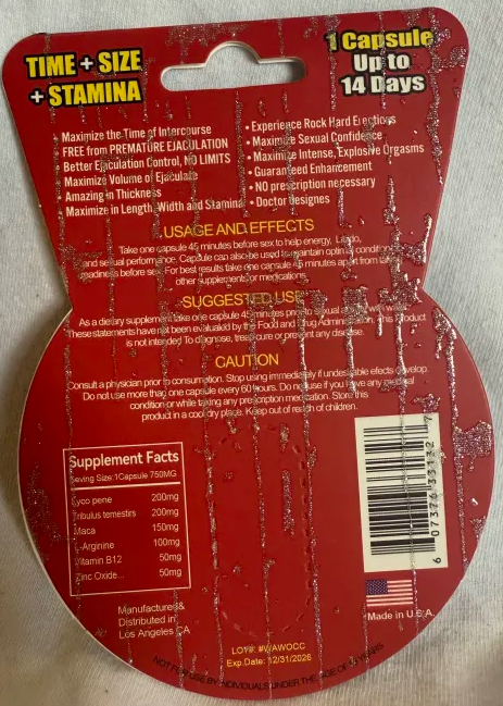 Take one capsule 30 minutes before sex to help energy, libido, and performance.