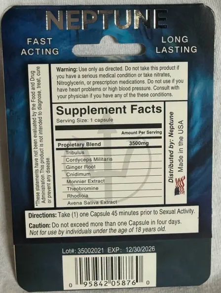 Take one capsule 30 minutes before sex to help energy, libido, and performance.