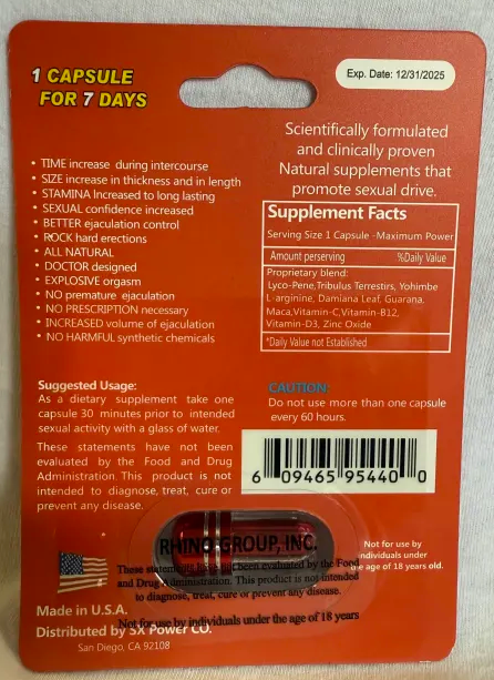 Take one capsule 30 minutes before sex to help energy, libido, and performance.