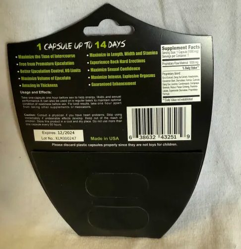 Take one capsule 30 minutes before sex to help energy, libido, and performance.