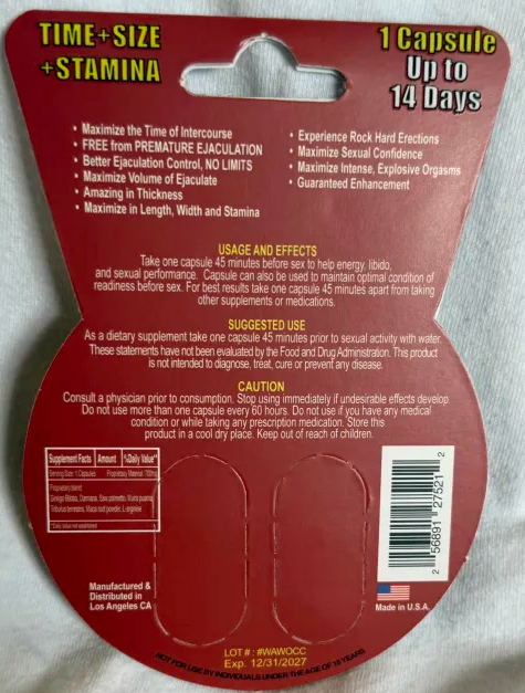 Take one capsule 30 minutes before sex to help energy, libido, and performance.